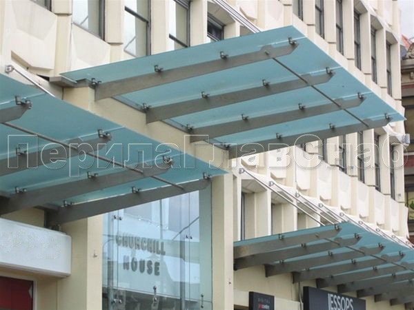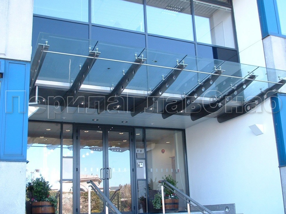 Стеклянный консольный навес на Г-образном каркасе - вариант 2