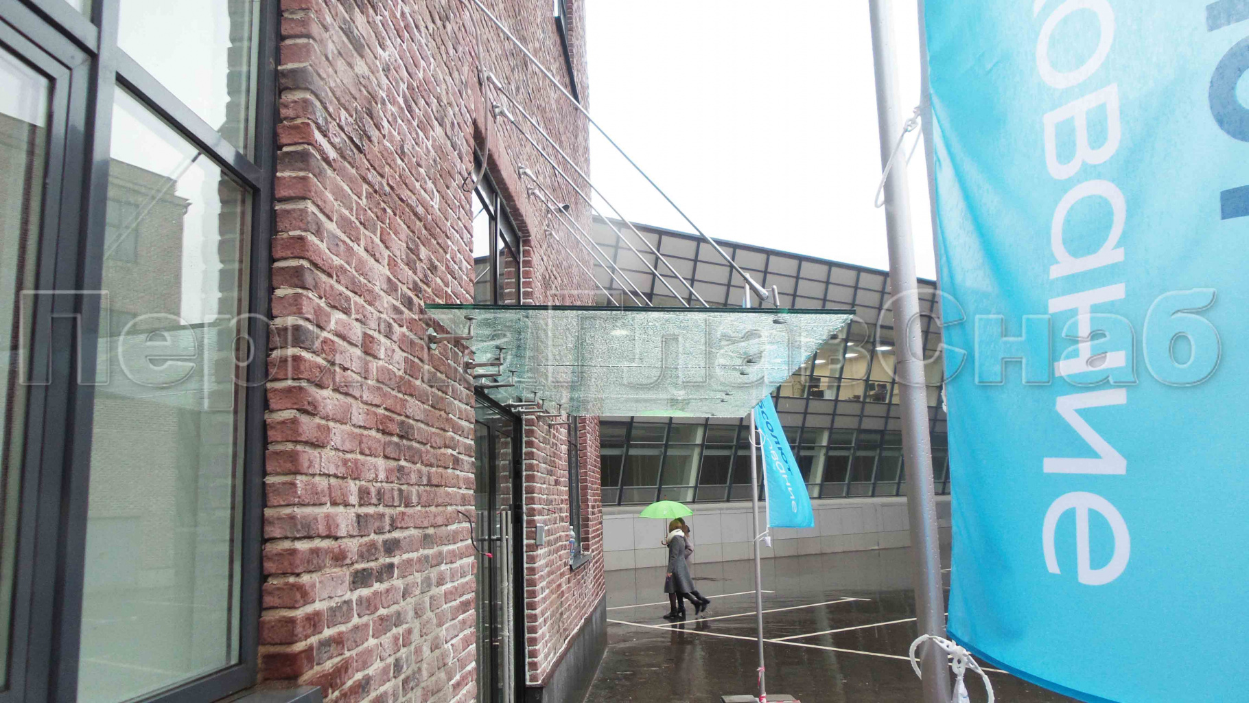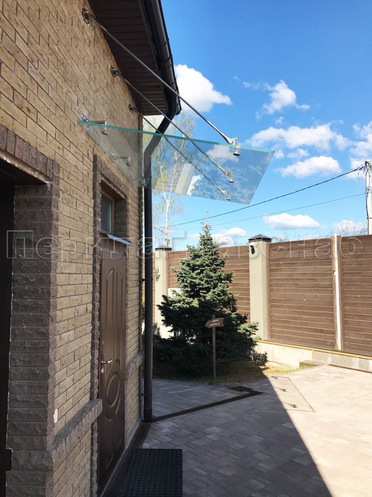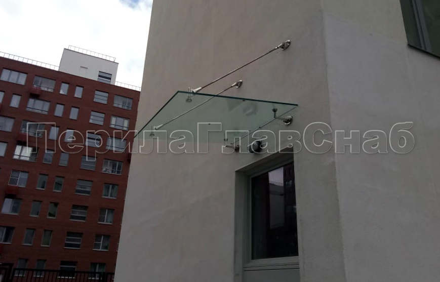 Стеклянный козырек на вантах и профильном каркасе