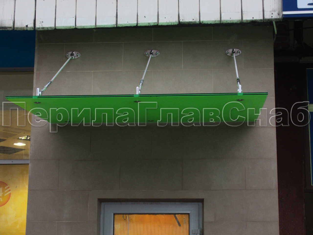 Стеклянный козырек на вантах
