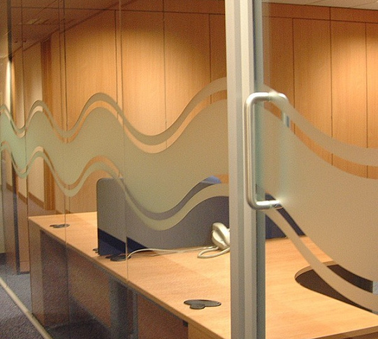 Стеклянные перегородки с декоративным рельефом в офисе