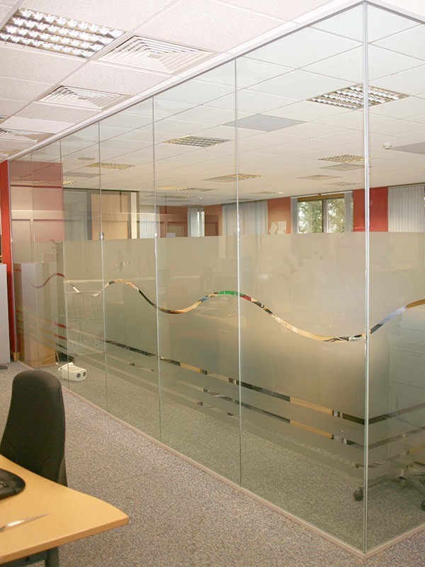 Записаться на встречу Стеклянные перегородки в офис, частично матированные